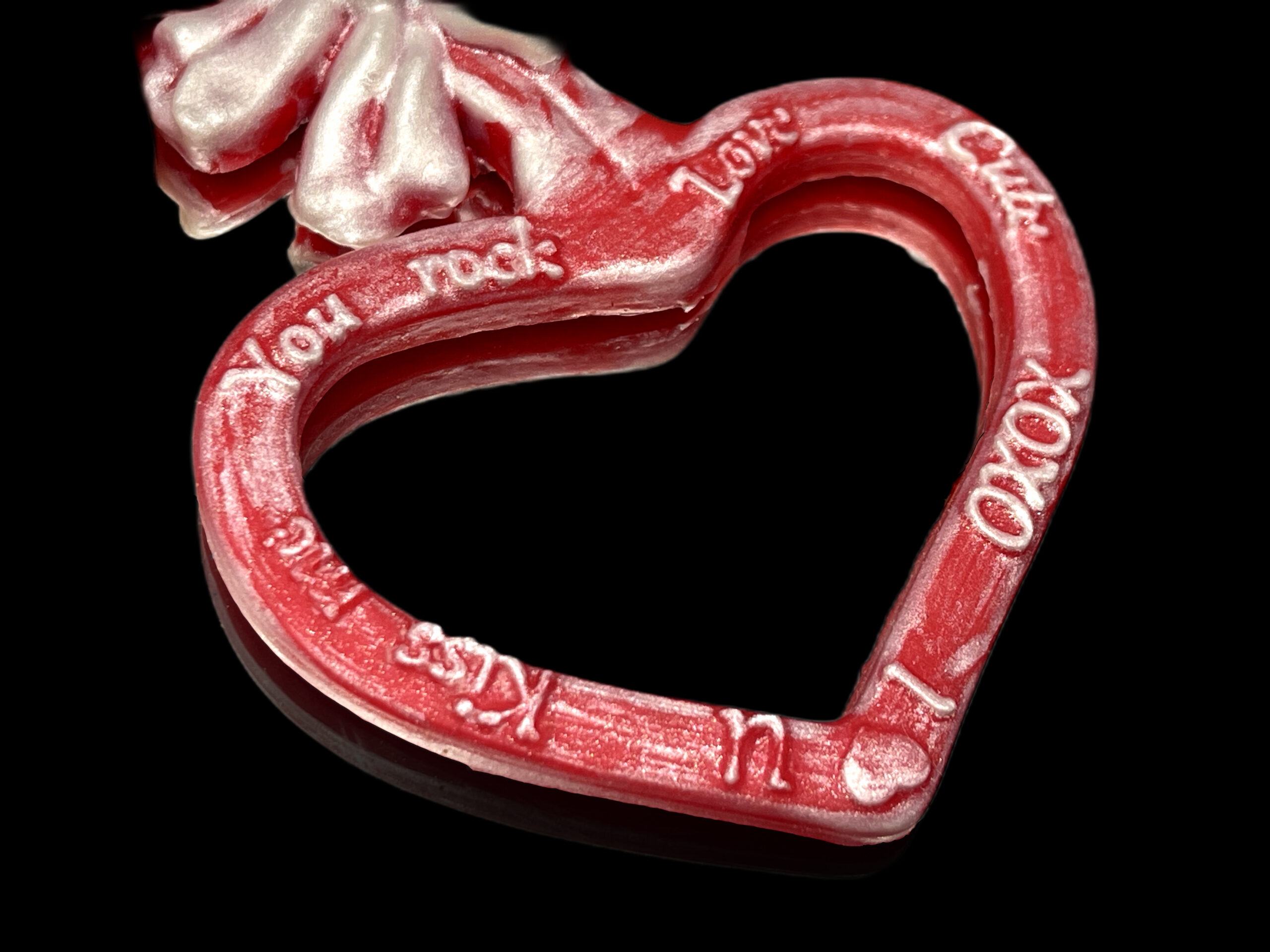 - Heart‑shaped design with a cute bow detail